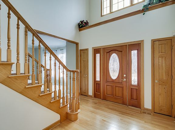 Backing up to a scenic horse farm, this beautifully maintained, move-in ready 6-bed, 4 bath home is situated in the highly-coveted Black Walnut Trails subdivision. This home has an inviting floor plan with 9 ft ceilings, gleaming hardwood floors with inlayed wood detailing, and all oak doors and trim. The updated kitchen features white cabinets, granite countertops, and newer stainless-steel appliances. The kitchen opens up to a large 2-story family room with floor-to-ceiling brick fireplace making it great for entertaining. Enjoy a third level of living space in your spacious, finished walk-out basement where you will find a second fireplace, 2 bedrooms, full bathroom, and kitchenette/bar; perfect for use as an in-law suite or nanny's quarters. The backyard is an entertainers dream, with a large, multi-level deck stepping down to the pool, oversized landscaped yard with mature trees and a fire pit. Enjoy all this and more just minutes from I-88!