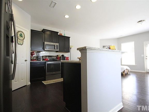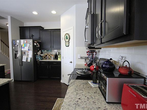 Immaculate 3BR, 2.5BA END UNIT w/ garage. Tons of privacy, lots of light w/ fenced yard backing to wooded buffer. Really hard to find a homesite location like this as an end unit with the privacy and back view! Open floorplan, hardwood floors, granite countertop, espresso kitchen cabinets. Kitchen opens to family room w/ fireplace. Master bedroom with tray ceiling & attached master bath w/ soaking tub & separate shower. Two secondary bedrooms & spacious second floor laundry room. Comm pool, tennis, more.