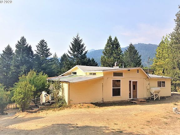 5+ Acres with 2 Legal Residences in the Woods with Water Rights to Cow Creek! Bring your tool belt and make this Home Sparkle. The home features 3BD/2BA w/one BD Plumbed for a 1/2 BA. Wood and oil Heat. Extra Long garage. New windows, Deck, Roof and Updated Electric! The property offers 2 Wells, 2 Septics, Many Outbuildings, Plenty of Fruit Trees Green House and a Garden area that needs your Magic touch to bring back to life.CASH ONLY.