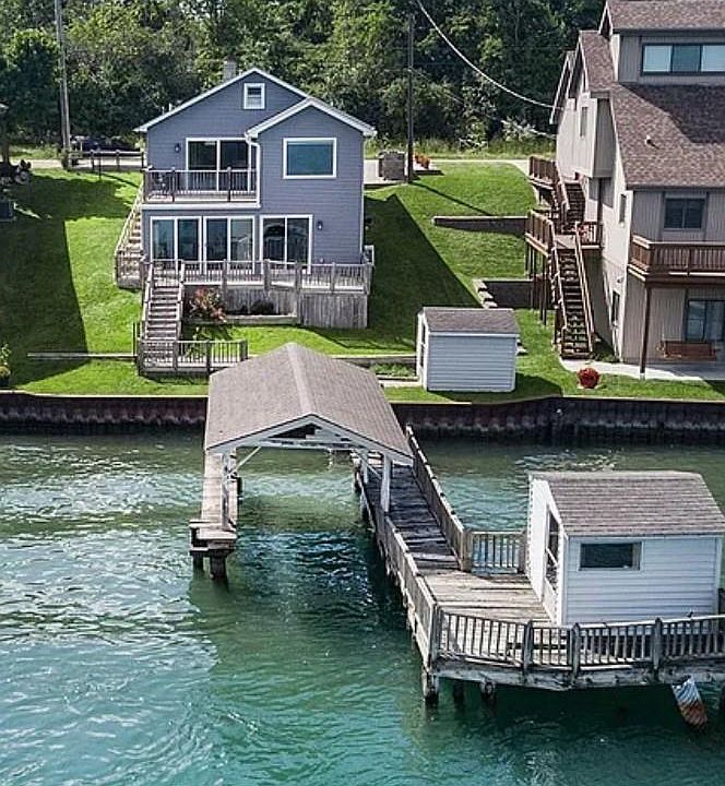 Come enjoy this beautiful home with waterfront living in this contemporary masterpiece nestled along the picturesque shores of the St. Clair River. The house have breathtaking views, modern amenities, and unparalleled access to the water, this home offers a lifestyle of luxury and tranquility. Step into your personal paradise with this 5 bedroom, 2 bathrooms home spanning over 2,200 square feet of living space, featuring a walkout basement and two exterior balcony decks. House was remodeled in 2024. House also includes a private room right off the boat dock. Pull your boat into your own slip and call this masterpiece home. BATVAI!!
