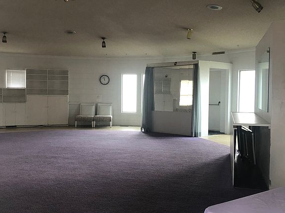 Many possibilities to inspire you. This masonry block round structure was once a church. One and a half bath and what could be a bedroom. Partial kitchen is intact and there is surround sound in the ceiling. The acoustics in this place are amazing.