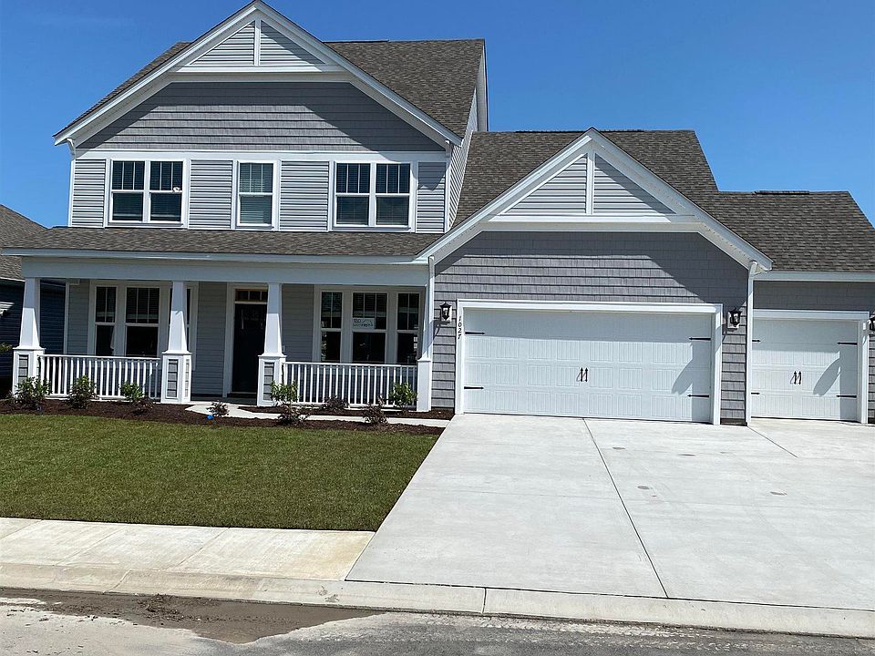 This Ivey-ACL features Natural Gas, 3 Bedrooms, 2.5 Baths, a Study, Loft, Foyer, Formal Dining room, and covered back porch. Upon entry, a generous, bright Foyer is highlighted with the French doors of a study on one side and the open Dining room on the other side. Both the Foyer and Dining room are enhanced with crown molding. The Kitchen boasts a Butler's Pantry, Stainless Steel Whirlpool Stainless Steel appliances, Granite Counter tops, and crisp Flagstone Master Brand cabinets with crown molding. A huge laundry room is located just off the garage and valet area. The spacious Primary bedroom is located on the first floor. The lovely Primary en suite includes a bay window, a huge Daltile tiled walk-in spa shower with a rain showerhead, and wall shower head, double vanity, and 2 large walk-in closets. The 2nd level of the Ivey is accessed via stairs with open rail wood balusters. The 2nd level includes a Loft, 2 Bedrooms that share a hall bath. This home is 100%Energy Star Certified to create a more efficient, cost effective, comfortable home. The Belle Mer community features amenities galore: a community pool, clubhouse with an exercise room, catering kitchen, and gathering hall, sidewalks, and street lights. Belle Mer boasts a premier location between Myrtle Beach and Murrells Inlet, between 17-Bypass and 17-Business, across from 3 large shopping and dining venues, and just 3 miles to the beach.