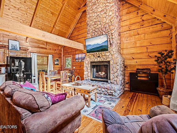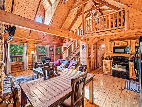 Don't miss your chance to see this newly renovated cabin located in historic Sky Harbor, just minutes from Pigeon Forge and Gatlinburg. The 2 bedroom, 2 bath cabin also includes a bunk space, loft and basement. This spacious cabin can sleep up to 10 people. With new electronics, new hot tub, new bedroom furniture, new fireplace with updated gas lines, new HVAC (including furnace and condenser), this cabin is completely turnkey and ready for renting. It has also been recently stained. Guests are guaranteed to enjoy the wrap-around porch, spacious side yard for corn hole and other outdoor activities, as well as ample privacy being surrounded by trees. With two game room areas containing arcade games, a pool & poker table, 4k tv's throughout the house, and a plethora of board games, this cabin is completely turnkey with a strong rental history and high owner use. Schedule your showing today! AirBNB Link: https://www. airbnb.com/h/campcarefree