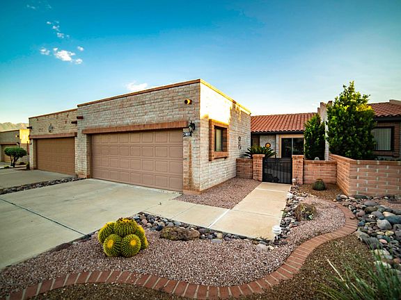 Year round lease available on this unfurnished townhome in convenient central location in Encanto Estates. It offers stunning, unobstructed panoramic views of the Santa Rita Mountains sunrise and sunsets will constantly amaze you with their everchanging colors! The perfect size home with 1459 square feet - 2 bedrooms, 2 baths and 2 car garage with storage cabinets. Enter into the dramatic foyer with vaulted ceilings and large window flooding the home with natural light. The kitchen has an abundance of cabinets, Corian countertops, glass cooktop range and side by side fridge with bottom freezer. Large living room has triple pane sliding door to bring the terrific views of the desert inside. Wonderful outdoor living with a full-length covered patio extending onto a brick paver patio. Very private setting with natural desert arroyo behind the home and the ability to walk down local trails to the community park! Owner/Agent. Unfurnished Townhouse; One year lease; Tenant pays for all utilities; GVR access if desired. No smoking or pets please.