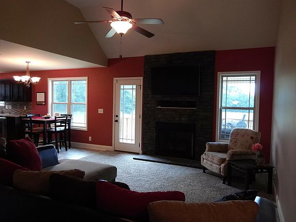 Stunning stone fireplace & vaulted ceiling in living rm. double vanities, separate tub & shower in master, spacious eat-in kitchen w/pantry, granite counter tops, covered deck, finished rec room w/full bath. Huge Lot and pet friendly!