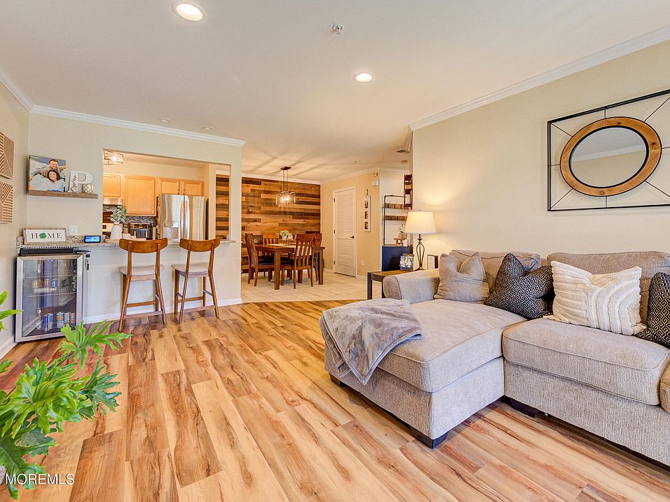 Talk about move in ready! All you need to do is unpack & relax! This lower level, 2 bed, 2 bath condo is super clean, very modern and perfectly located near the Belford Ferry, Middletown Train Station, Bus Depot, shopping, and NJ beaches. The main living space has tons of natural sunlight, recessed lighting, crown molding, new luxury vinyl flooring & sliding glass doors that lead out to a cozy covered porch. The spacious primary bedroom has an on-trend accent wall, 2 closets, and a private full bath with tub and shower. When you enter into the kitchen and you will fall in love with the new stainless-steel appliances, granite countertops, backsplash, & breakfast bar. Enjoy meals in your dining room that gives that farmhouse feel with new light fixture and shiplap focus-wall. See it today!