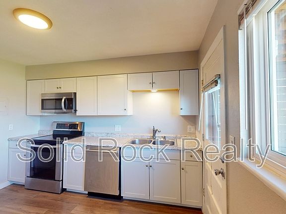 An updated lower-level unit in quadplex building: 2 bedrooms/ 1 bathroom; a spacious eat-in kitchen with newer kitchen cabinets and SS appliances; LVP flooring throughout; in-unit laundry with Washer and Dryer included; a private balcony with beautiful mountain views and Templeton Gap trail just behind the property! Centrally located, with easy access to Austin Bluffs Pkwy, Union Blvd and Nevada Ave. Short driving distance to UCCS and University Village with many restaurants and shopping centers! Visit solidrockre. All applicants should complete a Pet, No Pet, or Animal Profile. - Cats or dogs allowed. Max of 2, up to 30 lbs. (restrictions, additional terms/Pet deposit/Pet rent apply). - No exotic pets allowed! - No Smoking. No Marijuana. No Drug use. - 12-Month Minimum Lease Term - Tenant pays Electric, Gas, Water, Sewer and Garbage utilities. Credit Screening: 600+ Preferred Minimum 575-599 = Double Security Deposit; Conditions apply Income / Employment: Gross combined monthly source of income of all applicants must be 2 times the monthly rent. Verification of income is required and no applications will be accepted or considered without this information. Landlord Reference(s): - Positive reference from current and/or previous Landlord(s) - No Evictions in the past 7 years Background Screening: - No violent crimes in the last 5 years - All other crimes evaluated on a case-by-case basis in the last 5 years - No criminal charges relating to homicide or methamphetamines from any point in time. TENANT DISCLOSURE: 1. The prospective tenant has the right to provide to the Landlord a portable tenant screening report, as defined in section 38-12-902 (2.5), Colorado Revised Statutes; AND 2. If the prospective tenant provides the Landlord with a portable tenant screening report, the Landlord is prohibited from: - Charging the prospective tenant a rental application fee; or - Charging the prospective tenant a fee for the Landlord to access or use the portable tenant screening report. ** DISCLAIMER: We do our best to market our properties online as accurately as possible. However, it is possible some of the images will have inaccuracies or will appear slightly different in person than in our virtual tours. For this reason, we strongly recommend all applicants view properties in person before signing a lease so there is full awareness on the actual condition of the property. **