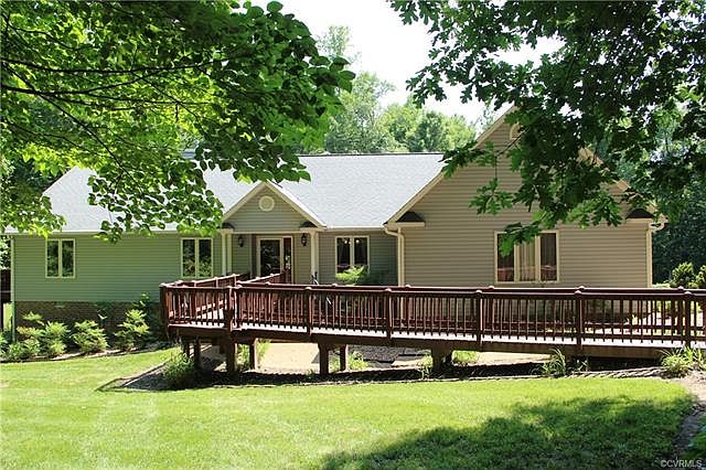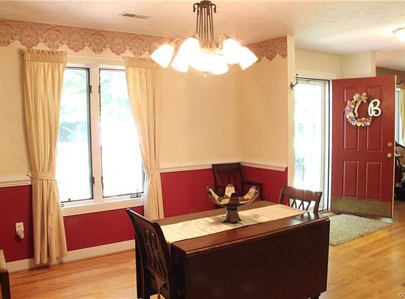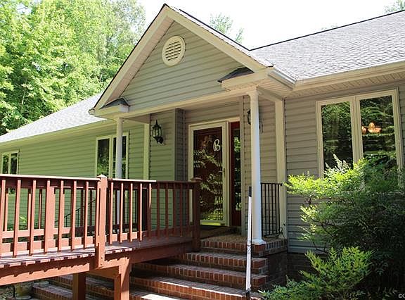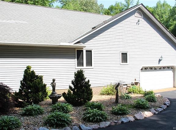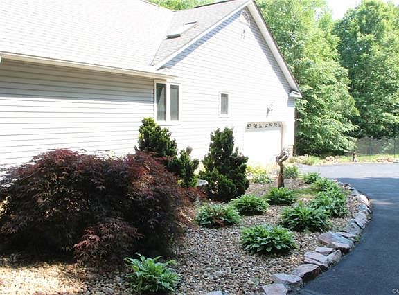 Situated on a quiet cul-de-sac this 4 bedroom, 2.5 bath ranch has so much to offer...formal living room, dining room, bright family room open concept with gas logs, eat-in kitchen with pass thru bar with seating; stainless steel dishwasher & refrigerator; farm sink,granite countertop stainless range & wine cooler, pantry and loads of cabinetry. Upgrades throughout. Hardword floors throughout. You'll love the sunlit Florida room/sunroom with its wall of windows overlooking 8 wooded acres. Off the kitchen is a wide hallway leading to the half bath, laundry area and the spacious master suite with new wood look ceramic tile floor and adjoining master bath which is wheelchair accessible with a roll in shower. Three additional 1st floor bedrooms and full bath complete this great home. Attatched 2 car garage and separate 1 car garage on property. Nice outdoor porch with tongue and groove vaulted roof with ceiling fan leading down to separate outdoor deck. This home is also handicapped accessible! Friends will be envious of your quiet retreat.