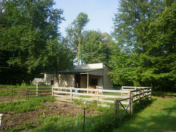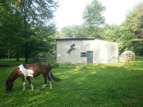 One story Cottage On A Mini Farm Tucked Away in a gated community including a 800 Sq. Ft. barn with 2 stalls,loft, tack room, storage, paddock and open lot surrounded by forest. also 2 sheds , 1/4 acre fenced dog run, 1/2 acre fenced stock lot, green house and garden.