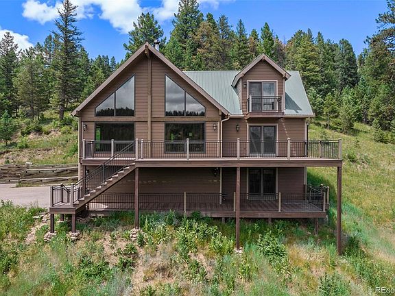 Quintessential Colorado mountain living awaits! Nestled on 3 tranquil acres with meadows, trees, and mountain views, this home offers the perfect retreat. Enjoy low-maintenance living with newer Hardy board concrete siding, updated windows and doors, a metal roof, and Trex-style upper and lower decks. Inside, an open floor plan and a wall of windows fill the space with warmth and natural light, showcasing stunning mountain vistas.
