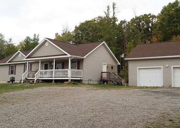 Wow what an amazing property! 2008 Modular home with over 17 acres of wooded land! House is like brand new, very well taken care of! Lots of hunting, trails for riding, large 1 acre stocked pond, huge 3 car garage that once had a auto business out of it. House features great large foyer entrance, open floor plan for entertaining, island with bar in kitchen, all kitchen appliances stay, easy one level living, bamboo hardwood floors, new septic put in 08, large master bedroom and bath, low utilities, huge finished basement with gym and another living room! So much to offer!