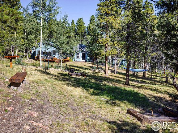 Nestled on a fully fenced 2.5 acre south-facing property, sits a welcoming mountain ranch style home. This inviting retreat is a true experience showcasing a touch of custom contemporary mountain flair aka 'cool vibe' . This ideal 'farmette' setting includes a lush private meadow surrounded by a forest of aspen and evergreen trees, the level grounds are accented w/ raised perennial garden beds, chicken coops + handbuilt stone walls. A spacious front deck welcomes residents into an open and inviting floorplan. Completely remodeled w/ designer/ builder touches, a stylish kitchen beams w/ quartz countertops and maple cabinetry. Vast windows in a bright sunroom inspire a light-filled atmosphere. A cozy wood-burning stove warms a living area setting the stage for serene relaxation. Retreat to a sizable bedroom complemented by a spa-like bathroom w/ a large walk-in shower. A detached studio offers flex space for a home office/ workshop or garage. Soak in stunning views from expansive decks including a separate hot tub deck. Come see + experience this property as it is a MUST see in person + looks even better in person. Close to Golden Gate State Park + Starr Peak w/ unparalleled outdoor recreation and Skiing near by. Easy 20 - 25 minute commute to Boulder, 45 minutes to Denver, well maintained roads with easy access, low Gilpin Co taxes, Boulder Schools, high speed internet/fiberoptics.