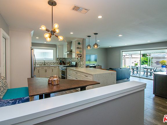 Beautiful completely remodeled home! Enjoy the open-concept modern kitchen with a waterfall island, tile backsplash and deluxe appliances. A built-in breakfast nook with seating and storage separates the entry way from the kitchen. The oversized sliding door opens directly onto the patio for indoor/outdoor entertaining. The master has a sliding glass door to the backyard and a private bathroom with a large shower. Guest bathroom has a shower and tub with beautiful tile and a built in shelf for shampoo. This home has many upgrades including tile flooring throughout, quartz countertops, PEX piping, electrical panel and all upgraded wiring, LED lighting, dual pane windows, solid core interior doors, insulated exterior walls, and a new HVAC system and ducting. The backyard is perfectly set up for entertaining with a fire pit, Ipe wood deck, a spacious lawn, landscape lighting and several fruit trees. Natural gas has been run for the fire pit and the BBQ so you never have to buy propane!