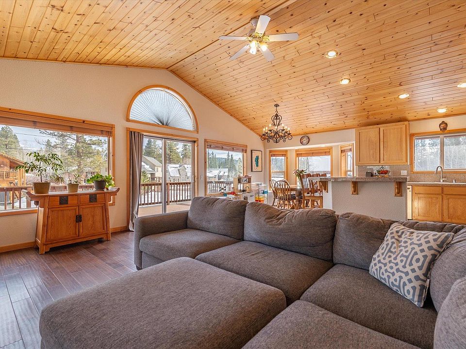 You'll know that you have arrived when you pull up to this special property located on an idyllic, Truckee loop. The 4 bedroom, 3 bathroom residence is situated on a flat, sunny, landscaped lot with a fenced backyard convenient for pets, children and extra privacy. An oversized and insulated two-car garage, large driveway, additional off-street parking for an RV or trailer and a storage shed provide ample room for all of the Tahoe-Truckee toys. Transitioning inside, the bright and open great room is complemented with vaulted, knotty pine ceilings and a wonderful kitchen, perfect for entertaining. Step out onto the expansive front deck for sunny morning coffees and to tend to the grill in the evenings. This main floor of the home is completed with a primary bedroom/bathroom suite, two additional bedrooms and a hallway bathroom. The lower level consists of a large bonus/media room, an additional primary bedroom/bathroom suite and a laundry/utility room. The back deck and new 650 square foot paver patio transition to an irrigated lawn, raised flower and gardening beds and a play structure, all receiving great afternoon and evening sunshine. This centrally-located Glenshire home makes for a short walk to the elementary school and also provides easy access to Downtown Truckee, Lake Tahoe and Reno.