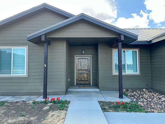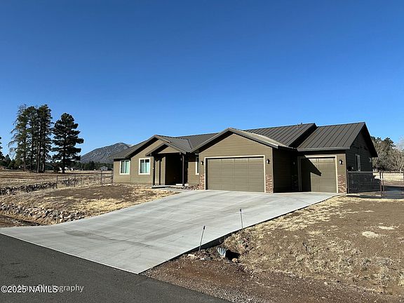 Do not wait! Stunning home with beautiful mountain views in the Johnson Ranch community. This home was built in 2021 and features upgrades such as a metal roof, tankless water heater, Energy Star appliances, windows and custom Roman shades. This four bedroom three bath home features a separate office or den space and air conditioning! It is just minutes from the Flagstaff Mall. This property is fenced and does allow horses. This home is a must see! Book your showing today!