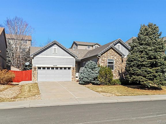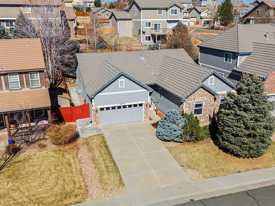 Discover the convenience of main-floor living in this spacious home, featuring a large primary suite with easy access to the expansive kitchen with abundant storage that seamlessly flows into the family room. The main level also includes two additional bedrooms, an office/flex room, and a laundry room. Downstairs, you'll find private guest quarters with an ensuite bedroom and bathroom, plus a generous second family room with a full wine bar, perfect for entertaining. Recent updates include a new furnace and AC, water heater, washer/dryer, exterior paint, and a refreshed garage door and opener. Concrete tile roof. With taxes in Meridian Hills $2,000 PER YEAR LOWER than Sierra Ridge or Meridian Village, and $3,300 PER YEAR LESS than Lyric, you can enjoy all the new amenities of RidgeGate East with a smaller house payment/tax bill.