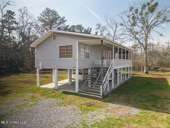 Precious waterfront on Biloxi River. This home has been in the same family since built in 1930. 1 BR 1BA with open kitchen/den plan on quiet road (just 5 homes) on beautiful lot in Woolmarket area. 2 wide staircases (front and on the water side) with covered porches. Storage room/workshop at ground level. Outdoor table with permanent umbrella is built into the property. Magnolia trees, oak and cypress. 3 minute drive to large new public boat launch and 3 minutes to Pier 13 restaurant/bar on the river. Go to the bar by boat or road!