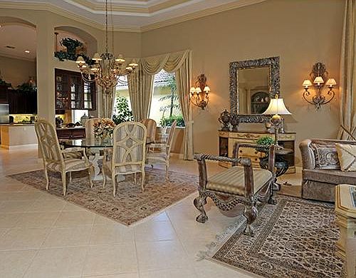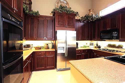 Former builder's model in Sand Cay offers incredible upgrades and designer touches throughout. Fabulous great room model, the "Aruba" in Sand Cay offers 3BR/3.5BA+Den. Soaring ceilings and an open floor plan characterize this designer-done home. Upgrades include: Upgraded cabinetry and granite counters throughout, a gas fireplace in custom the great room built-in, heated roman-style pool and spa with dramatic water features, stainless appliances, crown moldings, built-in grill, partial screen...