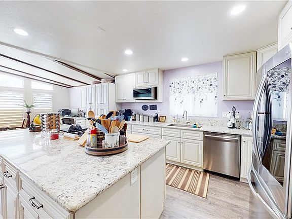 Welcome home to Highland Springs Village 55+ community! This super beautiful home on a certified 433A permanent foundation, will accept all financing! Pride of ownership and stunning renovations in this home, to include the rock facia, artificial turf in front and rear, and a 2 year old roof. This home boasts a large 1,632 sqft with newer wood laminate floors, gorgeous highly remodeled kitchen with granite countertops, large island with eating area, and stainless steel appliances. The kitchen opens to the large dining room/family room area with vaulted beamed ceilings, and large windows to let in all the natural light. The home features new dual pane windows throughout and plantation shutters for privacy. As you exit the kitchen area, you will head into the entryway/den which provides plenty of extra room for entertainment. The large expanded laundry room is just off the den and provides access to the guest bath as well as a door leading out to the carport. This home features 2 large bedrooms, and 2 full bathrooms. As you circle around to the back you will enter the large Master Suite with walk in closet. The master suite also includes a fully remodeled bathroom with custom walk in shower, copper tub, vent fan with Bluetooth speaker, and bidet toilet. Want to enjoy sunny southern California weather? Step out of the sliding glass door onto your own private gazebo covered back patio! The back yard also includes newly reinforced cinder block wall perimeter, and a large storage shed to house all of your gardening tools. The low HOA of just $150/mo includes, Golf Course, Clubhouse, Billiard Rooms, Library, Gym, Pool & Spa, Tennis Courts, and Pickle Ball! Don't wait to see this home, write us an offer today!