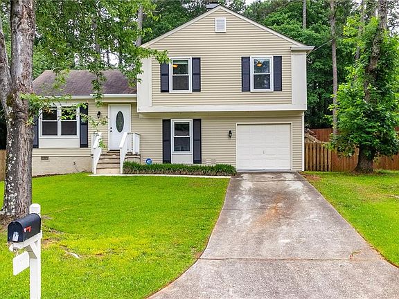 Super-cute home in move-in condition! Gorgeous bamboo flooring; all windows & sliding doors replaced w/Champion double pane; clean as a whistle; water heater 2 yrs old; washer/dryer stays; large back deck with a few stairs down to a fantastic private fenced backyard! Nice floor plan with lower den w/fireplace, ideal cozy hangout; main level has living room, dining room, and nice kitchen; upstairs are 3 BR and 2 full BA. Crawl space for storage. Immediate possession available. Excellent location near shopping, Newtown Park, restaurants, and GA-400!