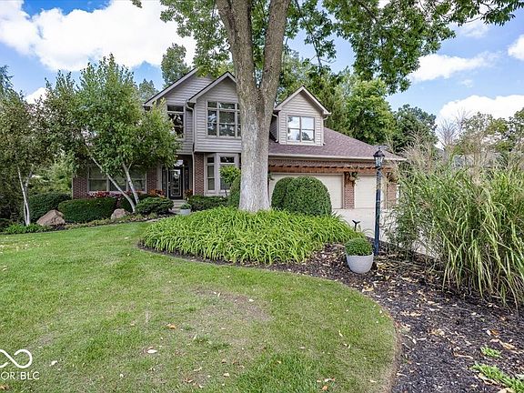 Located in the popular lakeside neighborhood of Cambridge, you'll find this well cared for home on a BEAUTIFUL treed lot! The open floorplan is perfect for entertaining, and you'll love the views as the leaves change colors this fall! The updated kitchen includes white cabinetry, a double oven (one oven and one micro/oven combo), a gas range with hood, quartz countertops, and stainless steel appliances. The family room with gas fireplace and bookshelves open up to the deck. The living room dining room is a large area and is ideal for a large family gathering! The office is also located on the main floor. Upstairs, you'll find four generously sized bedrooms. The primary suite has an updated bathroom and large closet. The walkout basement has lots of windows creating lots of light! There is a tv area, a billiards area, a wine cellar, a bar, a spare bedroom, and a full bath! Outside is a large, PRIVATE backyard complete with a deck and a patio area with pergola right outside the walkout basement. There's a mulched in area with stone path that would be perfect for evening relaxation! This home is just a few lots down from the park and lake. The Indianapolis Yacht Club is also just outside the neighborhood providing a great and reasonably priced option for a pool and clubhouse! Close to Hamilton Town District. Geist Elementary is across from the neighborhood, and the other HSE schools are right up the street on Olio Road. There's so much to love about this home - come see for yourself!