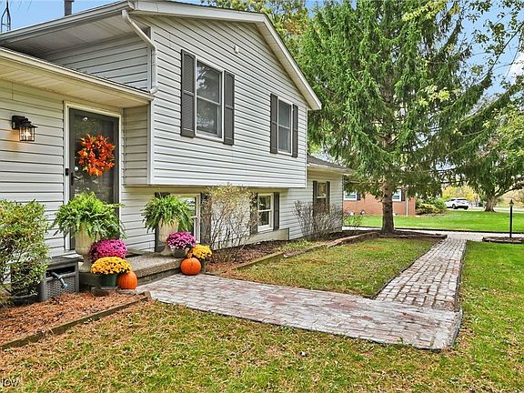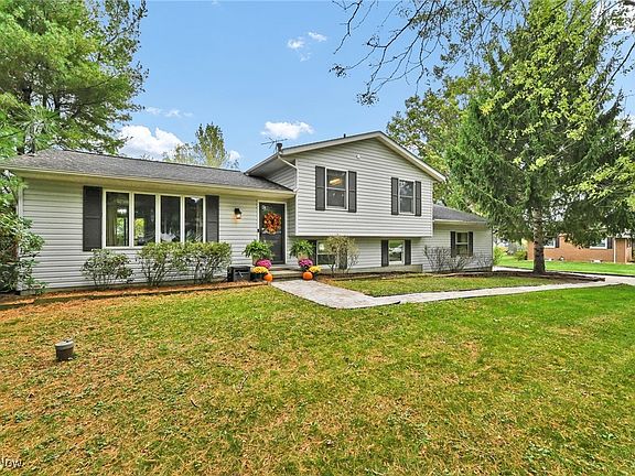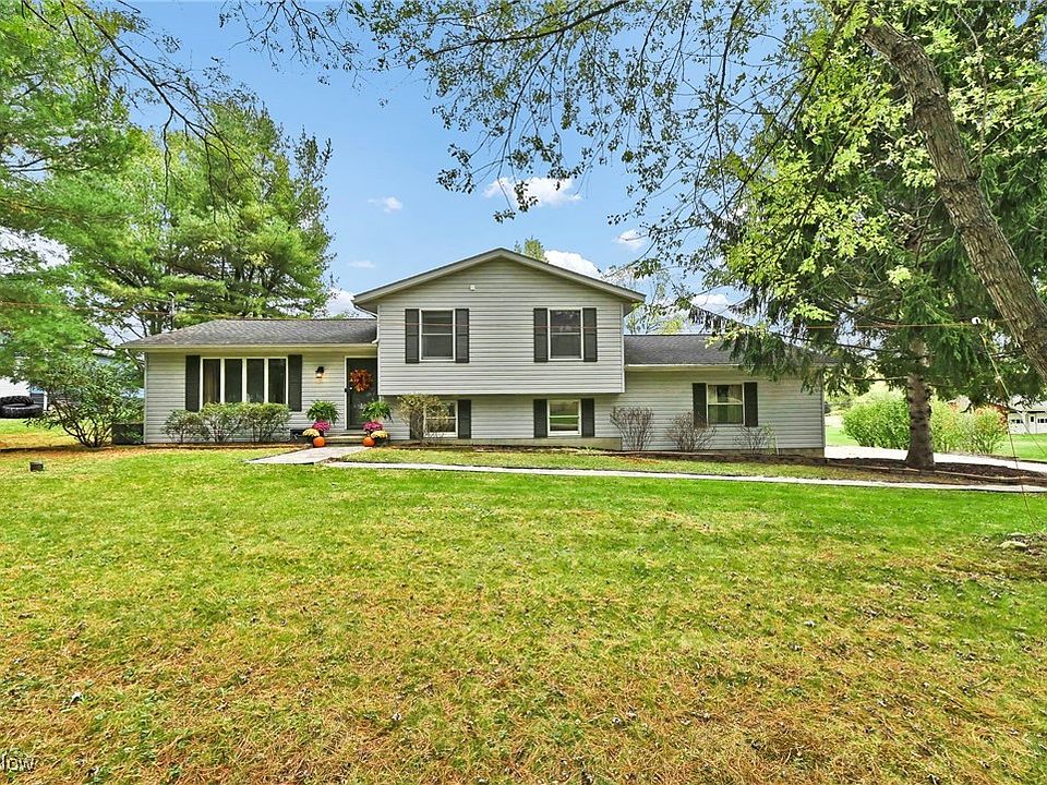 Built, lived in and loved by the same family for over 35 years, this wonderful split level home is just waiting for it’s new owners! Nestled among soft pine trees on over half an acre, this home has something for everyone with 4 bedrooms, two full baths and multiple areas for people to gather, hang out and share life. Three of the bedrooms are on the upper level, with the primary bedroom having private access to a full, shared bath. The main floor has a huge living room and dining room with hardwood floors, access through sliders to the back deck, and a fully applianced, cozy kitchen with granite counters and backsplash, a deep SS double sink, PLUS an extra prep sink and custom cabinetry throughout. Step down into the large family room, complete with a TV and bookshelf (which stay) AND just off that room is bedroom #4 with another full, shared bath. The final level is the basement, which has been waterproofed and has LOADS of storage space, plus a laundry area, including a sink, a washer, dryer and chest freezer that also stay with the house. From the family room, you can access the 2.5 car HEATED garage - a car or woodworker’s dream space! A pellet stove heats the entire room which has cool storage lockers on one side and a wood-working/workshop area on the other. Outside, there is a large Amish-built shed for even more storage, a raised bed with strawberry plants for next summer and the septic tank which has already been inspected and PASSED by the county. With plenty of room to run around, a lovely, quiet neighborhood and Top-rated Lake Local schools, PLUS a one year Home Warranty, what’s not to love? Roof and Furnace: 2014; A/C: 2025. Enbridge gas: $91/month; First Energy:$107/month; Rumpke Trash: $136/quarterly. Call your favorite Realtor and schedule your showing today!