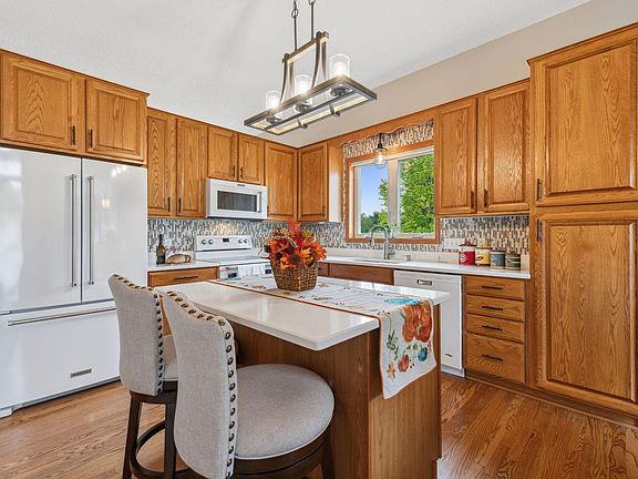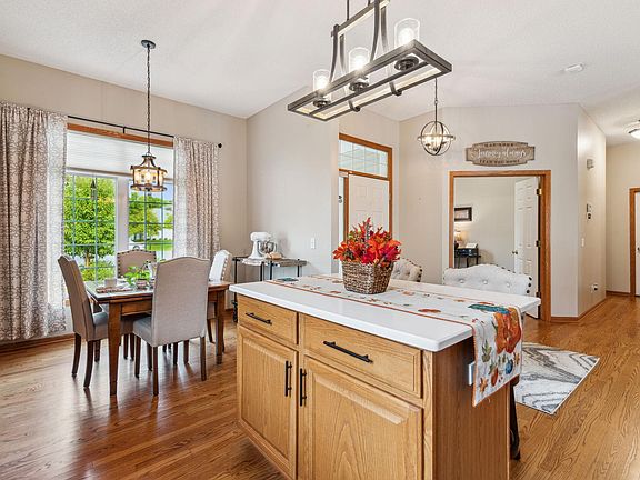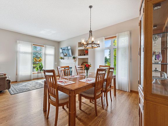 Immaculate sunlit twin home in sought after Powers Lake in Woodbury, just steps from walking trail that circles Lake for beautiful one hour walk. Kitchen features newer KitchenAid appliances and quartz countertops. One level living with main floor laundry and owners bedroom with walk-in closet and large ensuite bath with shower and jacuzzi tub. Office space on main floor could also be used as a bedroom. Bright and cozy sunroom faces south east and looks over beautiful lawn and deck at back of house. Home features ten foot ceilings on main floor and a gas fireplace in living room with oak floors throughout, large living dining area with ample space for entertaining. Lower level is a walk-out with another gas fireplace and two more bedrooms with spacious patio at back of the house. Huge storage space in lower level and additional large storage closets throughout. Newer furnace, air-conditioner, water heater and garage door. Association takes care of lawn, snow removal, and garbage.