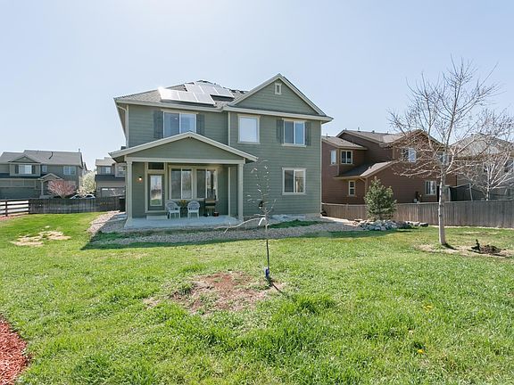 Price reduced to UNDER 400k! Gorgeous 4 bedrooms, & 3 bath Reunion home with stunning mountain views. This home sits on a Large corner lot adjacent to open space at the top of one of the most desirable streets in Reunion. Inside you will find an abundance of upgrades including: granite counter tops, stainless steel appliances, main floor hardwoods, upgraded carpet, five piece master bath, and a main floor study. This home also includes a abundance of solar panels, sprinkler system, and a newer roof! It is a terrific home for entertaining family and friends where you will enjoy beautiful sunsets over Longs Peak from the many comforts inside your home or under your covered backyard patio. Enjoy close access to multiple highways, parks, shopping, and restaurants. Plus great family activities all summer long in the Reunion Recreational park and South Lawn park. ****Paid HOA for 1 year. which includes trash and dues to the Reunion Rec center..Owner is Licensed Real Estate Agent in Colorado.