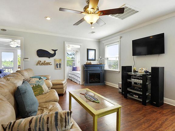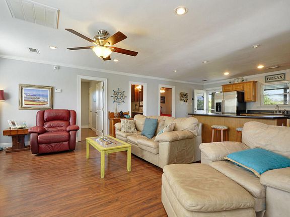 Cozy coastal waterfront property on a double lot with a nice screened in porch, big deck, downstairs Tiki Bar, outside kitchen area, surround sound and plenty of room for entertaining. The 3 bedroom has a sunroom that can also be be used as a bunkroom and a large utility room that can be easily converted to a second bath. You have your own private concrete boat launch, bulkhead, and dock so you can crab and fish right off the pier. Deep water canal right off Breath Bayou. The workshop is a perfect place for a hobby or a storage area. Close to casinos, great restaurants, Old Town and tons of entertainment!