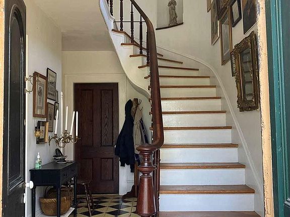 Calling all lovers of beautiful late 1800's homes, the details offered here are not 'typical' of a two story home found in our rural areas! Georgian, Victorian whichever style she falls under, you will fall in love with the detail found inside and out! The setting is magical! Hugging the shore of the Shawangunk Kill, but pleasantly elevated high enough, to capture the sights and sounds of the rushing water of the spring thaw. Wildlife gather, and an occasional bald eagle can be sighted soaring over the sparkling water. Double doors greet you into the front foyer, you'll first notice the graceful curved staircase, with original handrail and classic checkerboard painted floor. Enter the bright and welcoming living room with 3 panel bay window. Original wood floors run thru the first floor. As in this period home doors separate all the rooms. Original doors and hardware still exist. The dining room also boasts a bay window, with plenty of space for a grand gathering. Kitchen, is basic but functional, and has a cozy nook with table that has a view of the patio and Kill, the perfect place to sip your preferred beverage to start your day. A back staircase leads to the kitchen from the second level, be advised....stairs are very steep, and is currently used for storage. There is a bedroom on the first floor, which could be used as a den, library or office, as it has a door that leads directly to the front foyer. As you ascend the staircase, your mind will wonder what the house was like in days-gone-by! There are 3 bedrooms, 2 are very roomy with the third home to two twin sized beds! Full bath on the second floor was tastefully replaced with this modern, tiled bath with large shower. Walk in attic space above the kitchen area, is waiting to be added and transformed into a Grand Master Suite, which would have spectacular water views, bring your imagination! Grape vine surrounds a side-yard patio perfect place to watch the sunset over the kill. Heirloom plantings, are popping up all over this mature landscape, hurry to make this your place by summer 2021! Enjoy the bounty of the Hudson Valley from this central location, within 90 minutes to the GWB.