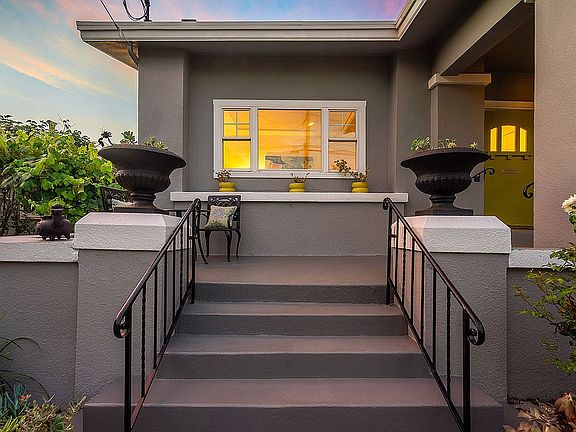 Cheery, ADU ready Craftsman Bungalow. Modernity meets tradition in this recently refreshed 1921 Craftsman Bungalow. Friendly porch, garden, & birdbath welcome you to 2 bedrooms & 1 bath, PLUS 211 SF cottage ready for conversion to ADU. Or just use it as detached office, guest room, play room, or garage. Tall soffit ceilings & bright open interiors make for easy California living. Floorplan flows effortlessly w/ large & comfortable entertaining spaces. Very flexible thanks to plus spaces like large utility & sunroom. Private outdoor space w/ large deck & covered flagstone patio means you can truly have your own urban escape. Front yard has been fertile habitat for birds, bees, & butterflies for many years, w/ healthy soil & drip system; ready for your own plantings. Dreamy kitchen w/ SS appliances, quartz countertops & designer shelfs. Upgrades include dual pane windows, elec panel & seismic. Long driveway. Close to BART, Temescal, Rockridge, Bay Street, Berkeley, bus service, etc.
