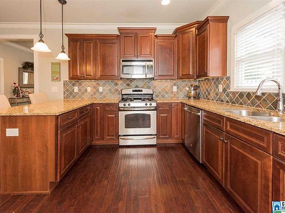 Location! Location! Location! Call today to see this cute, craftsman style 4 bedroom, 3.5 bathroom home. The wide front porch welcomes you into the cozy entryway and large great room with lots of natural light and hardwood floors. The dining room opens to the kitchen with granite wrap around counter, ample cabinets and stainless appliances. The back door off the kitchen opens to a covered patio and a nice sized, flat back yard with a new, white fence. The master suite is at the back of the house and includes a very large walk-in closet, a granite vanity, a separate soaking tub and shower. Upstairs are three bedrooms and two full bathrooms; one with a Jack-n-Jill bathroom and one off the large den. Enjoy the convenience of easy access to Hwy 280 and Hwy 119 with this beautiful home. It won't last long.