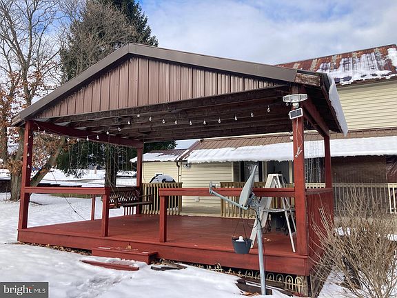 Nicely updated home on a large half acre lot with views of neighboring fields and mountains. Entertain on the covered pavillion area for BBQs or enjoying the outdoors, and additional covered porch area. Inside you will find the spacious kitchen with plenty of cabinets, pantry, and breakfast nook area. Living room is very generous sized for family time or relaxing. Off the kitchen is a family room with separate exterior entrance and half bath, which could easily convert to an in-law suite or first floor owner's suite. Half bath is large enough to add a shower to make it a full bath. Another half bath with a laundry area is also on the first floor. Upstairs are 3 nice sized bedrooms and a full bath. Basement area is currently used as an efficiency apartment with separate exterior entrance and bath as well. Large one car detached garage and plenty of parking. Call for your showing today!