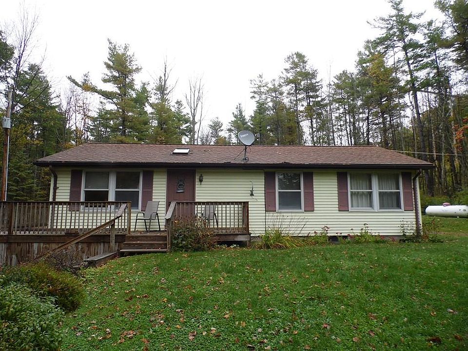Price reduced!!! Nestled in the woods just minutes from town, this ranch home offers the conveniences of first floor living combined with 31.07 in a very private setting. Newly remodeled kitchen with new appliances in 2018. Dining area overlooking the back deck and a large living room. Home also has 3 bedrooms and a full bath. Large wrap around deck to enjoy the outdoors or for barbequing and entertaining. Full basement with concrete floor and a garage area as well as lots of extra built in shelving and a workbench. Home sits off the road a ways and has a wrap around driveway for easy access to all levels of the home. Property consists of two parcels. Come enjoy the peacefulness! Oil, Gas and Mineral Rights are negotiable but not included in list price. SQ FT from Public Records.