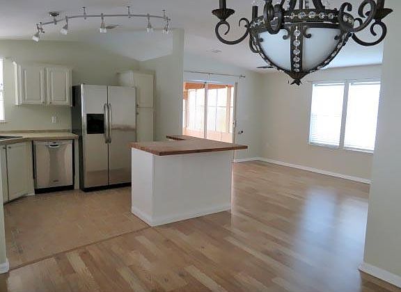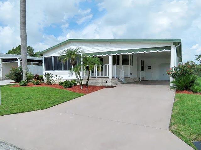 55+ Active Adult Community. No carpeting here-ALL HARD WOOD FLOORS! Lovely two bedroom, two bath home. On a perimeter lot (no neighbors behind you), extra large golf cart garage provides ample storage. Updated stainless steel appliances, large front Florida Room and a front porch. Did we mention the large backyard and mature landscaping? Fresh neutral paint.