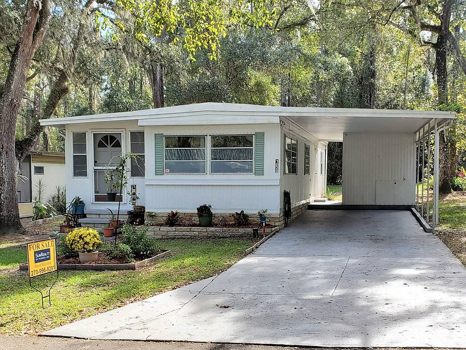 BONUS ROOM - Possible 2nd Bedroom! Adorable single wide on a gorgeous wooded lot with no rear neighbors! Plenty of parking with extra long drive way and carport deep enough for two cars. The backyard is huge and nothing behind the home but woods, so peaceful and enjoyable. Inside you will find an adorable home with 1 Bedroom and 1 bathroom in rear, and a possible 2nd bedroom with closet in what once was the sunroom. Pretty laminate floors in the living area and tile in the bathroom are newer upgrades. The floors are solid, roof recently sealed and some furniture will remain with the sale. If you are looking for a smaller home with a lot to love - this could be the one! Located north of the Tampa/Clearwater/St. Petersburg metro area, Clover Leaf Farms is a 55+ retirement mobile home community that is big on amenities. Offering two spacious clubhouses, billiards, shuffleboard courts, pickle ball and catch/release fishing you won't be bored here. There is also a dry sauna, indoor heated swimming pool, and a whirlpool-spa-hot tub as well as a large heated outdoor pool and new fitness center being built. This Brooksville, FL mobile home neighborhood will never leave you wanting. Clover Leaf Farms also provides its residents with a pet friendly environment that includes RV storage, a scenic picnic area, and on-site management. With so much to offer, you can't go wrong when you choose to live at Clover Leaf Farms.