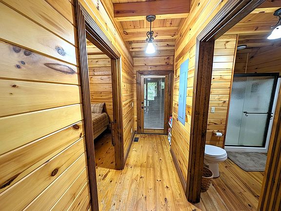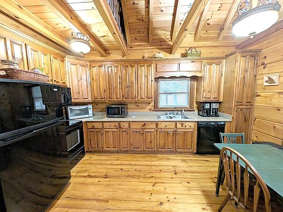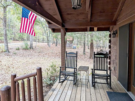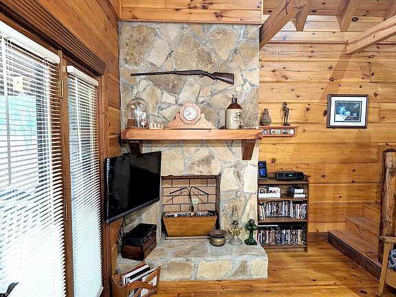TOTAL PRIVACY! This adorable cabin is nestled deep in the woods of Pine Mountain on two acres of property. Features pine paneling, stone fireplace, cathedral ceiling with exposed beams and well-appointed kitchen with lots of cabinet space. Large windows allow for ample natural light. Bedroom 1 and hall bath on main level. Bedroom 2 with ensuite bath upstairs. Small laundry closet in the hallway. Covered parking space for a vehicle. Screened in back porch. No frontage or ownership of pond. Pond view only. Seller uses Hughes.net for Internet. Starlink is available.