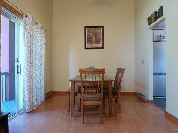 Contemporary Townhome on South Hill! Enter this well-maintained end unit through the covered front porch or attached garage. The kitchen features a ceramic tile floor and stainless appliances and opens to the bright and spacious living room/dining room with vaulted ceilings and hardwood floors. Enjoy summers on the peaceful deck off the dining room. The large full bath with laundry closet, master bedroom and 2nd bedroom are on the quiet lower level with sliding doors to a patio. Upstairs you will find the private 3rd bedroom or study which overlooks the great room.