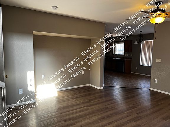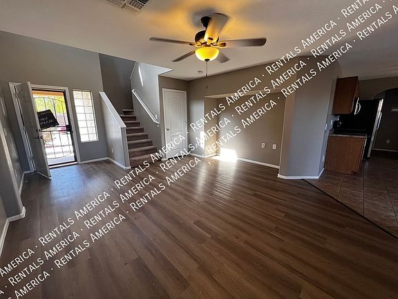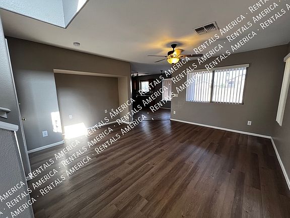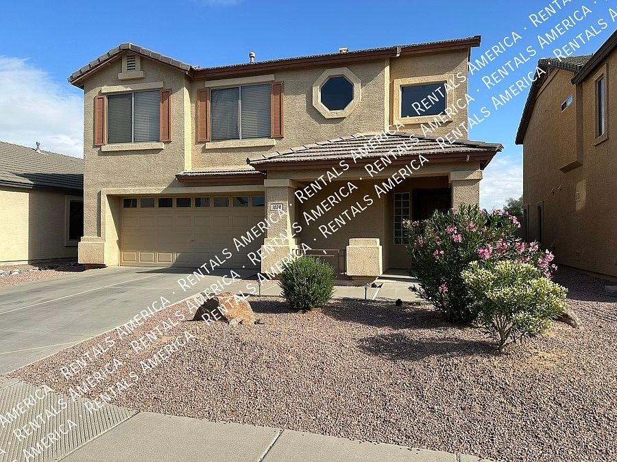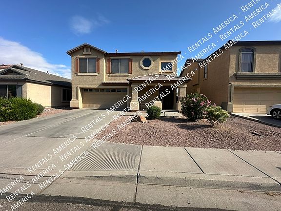 This 3-bedroom, 2.5-bath home offers a spacious layout with a large upstairs loft and generously sized bedrooms. Fresh, modern paint throughout gives the home a clean and inviting feel. The living room has new LVT Plant tile and media niche opened for more updated placement of TV. QUantam Fiber Internet set up for new tenant to connect service with Cox. The kitchen features plenty of cabinet space and a cozy dining area, while the downstairs includes a convenient half bath. Upstairs, you'll find two full bathrooms, a built-in tech desk in the hallway, and ample closet space. Additional features include ceiling fans in all bedrooms, faux wood blinds, and easy-care desert landscaping in the front yard with a large. Located in the desirable Johnson Ranch community, residents enjoy access to community pools and parks, with an elementary school just a short walk away. Pet-friendly and move-in ready. Quantum Fiber Internet is also available at this home! One Time Admin Fee: $300, Pet Deposit: $300/pet (If applicable),Service Fee: 2%. Resident Benefits Package: $39/month. Helping Heroes Discount Available! Carpet Cats Allowed Ceramic Tile Community Pool Disposal Dogs Allowed Garage Pets Allowed