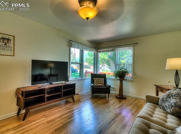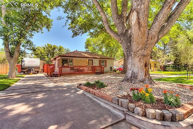 Updated, Mid-Century rancher in the heart of the crazy popular Patty Jewett neighborhood of Colorado Springs. Two sizeable bedrooms and an all-tile bathroom with a walk-in shower upstairs. The upstairs also features original hardwood floors that were beautifully refinished in early June. Theres also a guest suite in the basement with a full bath and walk-in closet. Youll appreciate the shade of 65-year-old trees as you sit on your front deck and enjoy a great view of Pikes Peak. The backyard is huge with a large concrete patio and a Southwest Colorado-inspired garden with clumps of mature Aspens, a perfect Blue Spruce and Columbines...Huge backyard provides plenty of options for expansion and remodeling. Youre 1.5 miles from Downtown Colorado Springs, a half-mile from the historic Patty Jewett Municipal golf course and a half-block from the new T-Gap shopping area with a craft brewery and pizza. And youll never need to go to the big malls because the Bonn Center is nearby with a Safeway, gym, Ace Hardware, Stir Caf and everything else you might need. This is an exceptional home in an great neighborhood!!