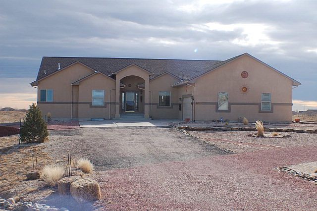 Beautiful home in a great location if you work in Colo. Springs or Pueblo. Located at the end of the cul-de-sac next to an equestrian easement. Gorgeous hardwood floors and wood trim throughout & lots of tile. Cherry cabinets, BI wine cooler & pantry in the large kitchen, all SS appliances stay. Main level laundry . Ceiling fans and 9' ceilings throughout. A gas log fireplace in the family room and Pikes Peak Views to the north. The large master bed room has a gas log fireplace, mood lights, big closets and a door to the patio. Master bath has his & hers raised sinks & a garden tub. Huge garage that is bigger than it looks. Unfinished basement. Maintenance free xeroscaping, no sprinkler. Truly a fine home in a fine location , it shows quality and pride of ownership throughout . Call Now !