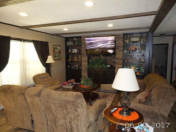 3 Bedroom 2 Bath 2015 Double-wide Mobile-Home on 2 acres. This Home has a open floor plan with a Large Living room and a Kitchen with a Island Bar and a Dining area. There is a Utility Room at the back door. The Master bedroom has a walk in closet, and the Master Bath has a Double Sinks, A Large Soaker Tub and a separate Shower. This Home will qualify for FHA Financing.