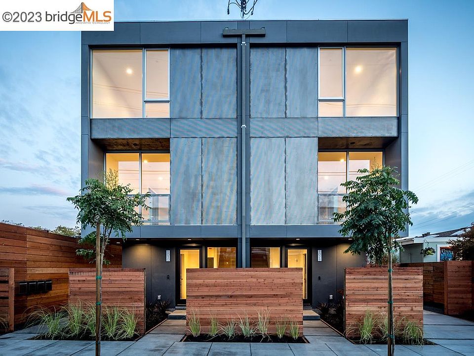 Built in 2018 by local noted builder, Workshop1, this contemporary home embodies modern architecture and energy-efficient living. Nestled in a small enclave in Berkeley, it fuses cutting-edge design with an open floor plan, boasting two bedrooms and two baths. The entrance sets the tone with light oak flooring and a glass door. On this level, you'll find a minimalist full bath, a spacious one-car garage with storage, and a potential home gym zone. Upstairs, soaring ceilings and abundant natural light grace the open floor plan. The kitchen showcases exquisite fixtures, a large center island, hex tile backsplash, walnut-white lacquer cabinetry, and a chic floating shelf. Integrated dining and living areas lead to a private balcony. Ascend the modern staircase to the bedroom level, featuring floor-to-ceiling windows, sharing an impeccably appointed bathroom with a skylight, walk-in shower, and mid-century modern dual vanity. A laundry room with added storage completes this floor. The location is exceptional, just a block from Berkeley Bowl, two blocks from San Pablo Park, and a short bike ride from 4th Street's retail district. This East Bay neighborhood offers a vibrant lifestyle, making 1028 Grayson an ideal choice.