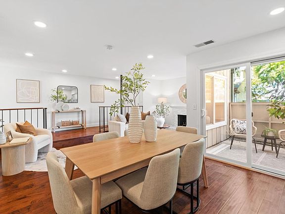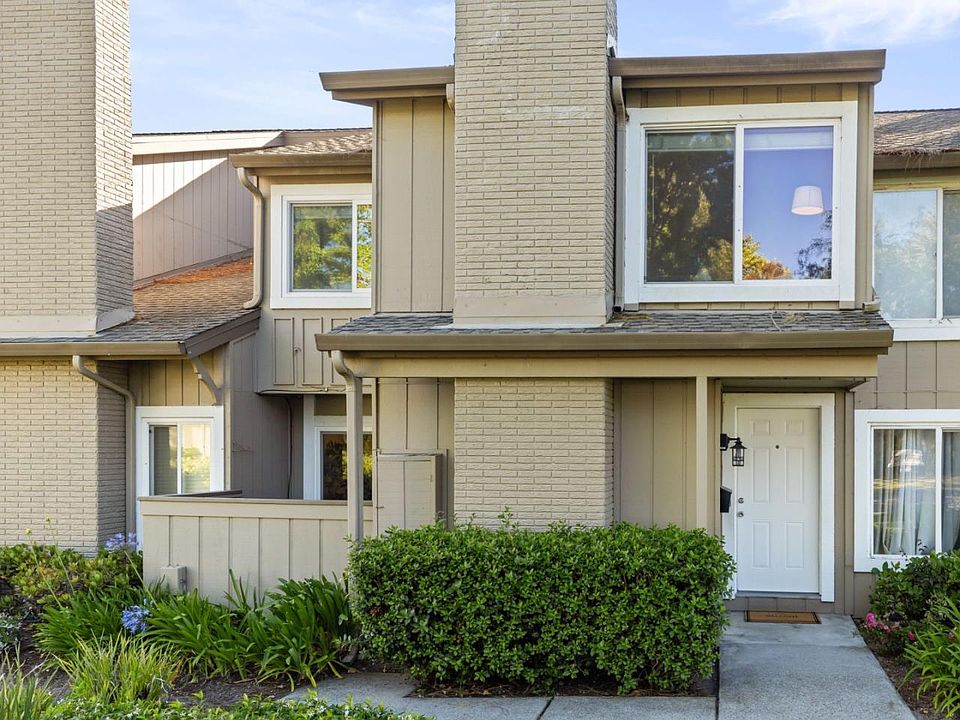 Nestled in a quiet and friendly neighborhood, this beautiful home offers a serene retreat with modern elegance and seamless indoor-outdoor living. The paved back patio, adorned with a lemon tree and a delightful swing, creates a tranquil outdoor haven. Upon entry, the open living space features hardwood flooring, a cozy fireplace, and beautifully appointed interiors. The family room, adjacent to the kitchen, provides a perfect space that effortlessly flows to the back patio, ideal for entertaining and relaxation. Upstairs, the spacious primary bedroom boasts an en-suite bathroom and walk-in closet, while additional bedrooms offer flexibility. The detached garage, updated with built-in cabinets and finished floors, provides versatile space and ample storage. Situated in a well-maintained community with mature landscaping, this home enjoys an abundance of natural light. Modern features of the home include updated kitchen and bathrooms, a smart thermostat, dimmable switches, recessed lighting, and new light fixtures. Just a block away from a beautiful trail along the San Francisco Bay, this residence offers an unparalleled opportunity to embrace an active outdoor lifestyle and enjoy breathtaking bay views. Don't miss the chance to make this warm and charming home your new haven!