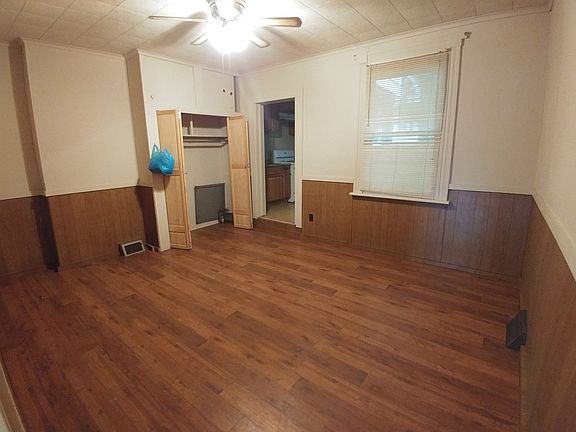 2 story duplex home with full covered front porch and rear small patio. Living room features built-in shelves, updated laminate flooring. Kitchen with stove and fridge with ceramic tile, Full bath with ceramic tile walls & flooring. A large attic for storage