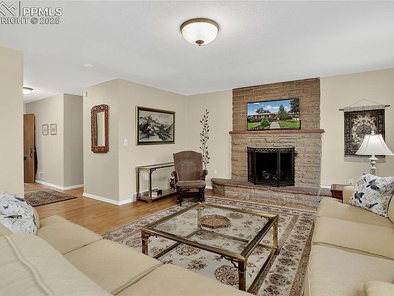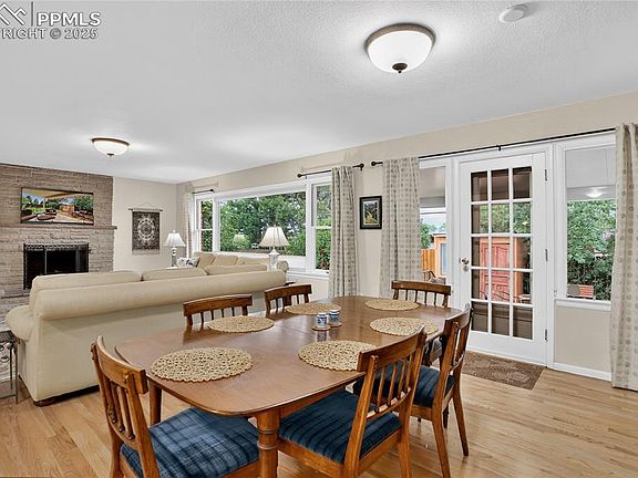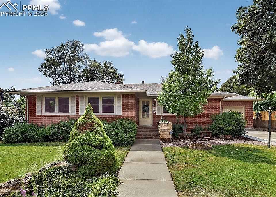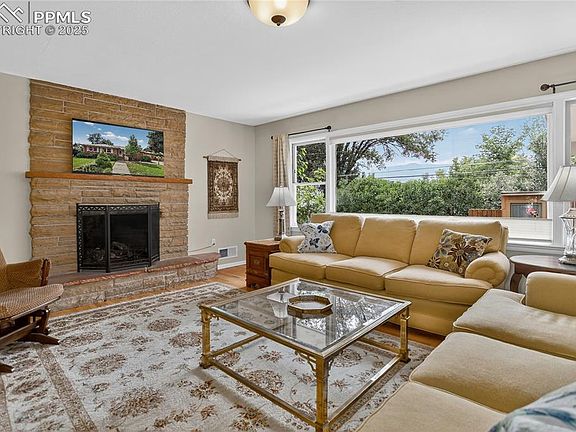 Warm and inviting ranch-style home in the lovely central Divine Redeemer neighborhood. Tastefully updated with timeless appeal, this home features a spacious open-concept main level with refinished parquet entry, oak floors throughout, and abundant natural light. Brand new concrete driveway and sidewalk along with a new Class 4 roof which will save thousands on homeowners insurance. The living room features a gas fireplace and mountain views through a low-e picture window, flowing into a dining area with door to covered patio and reimagined kitchen with solid wood cabinetry, quartz counters, upgraded appliances, and breakfast bar. The spacious primary suite offers three closets, hardwood floors, and an en-suite full bath. Two additional bedrooms and another full bath complete the main level. Downstairs includes a large family room with upgraded carpet, brick gas fireplace and three garden-level egress windows with timber lined window well and a huge closet, plus an oversized office/5th bedroom, guest room with another egress window, and flexible space for entertainment. Outdoor living shines with a tiled 14x12 covered porch and expansive 37x25 stained concrete patio surrounded by perennials, lilacs, mature trees, and a professionally maintained lawn. The slate front porch, new driveway and sidewalk, and charming bench area enhance curb appeal. Parking includes oversized attached single garage with overhead shelving along with covered concrete RV or car parking with alley access. Additional updates include HVAC with central air and humidifier, upgraded blinds, solar tubes, refinished tubs, new roof, and extra insulation, Central location is walkable/bikeable to fun downtown community activities. Classic comfort meets thoughtful upgrades in a beautifully cared-for home.
