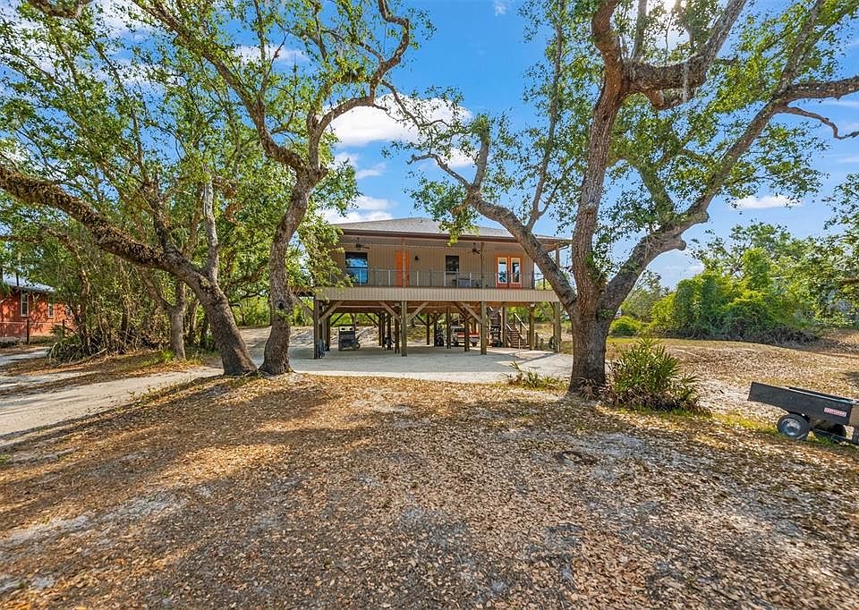 A piece of paradise awaits on the beautiful Peace River! This open floor plan features a gorgeous kitchen with an abundance of custom wood cabinetry including pantry pullouts, granite countertops, stainless appliances and an amazing double cast iron farm sink. Perfect for entertaining, the kitchen opens to the dining and living spaces with a bar top with room for 6 barstools. Many upgrades include tall ceilings, crown molding, wood-look tile and oversized baseboards throughout. The 4 sets of French doors with built-in blinds lead to front and back covered porches with composite decking and ceiling fans to enjoy your beautiful views. There are both stairs and a ramp up to the living space. The laundry room is large with a counter space and upper and lower cabinetry for more storage. This home is a newer, well built home with triple spray foam insulation for maximum energy efficiency. There is an additional deck space overlooking the river with stairs leading directly down to the river. A new reverse osmosis and water system was recently installed. There is a 50 amp RV hookup with water and sewer. You can park up to 6 vehicles/recreational vehicles under the home. Arcadia is a true hidden gem tucked between several desirable, developing communities with a ton of old Florida charm and history from the historic downtown to the rodeo. You can enjoy endless activities from your backyard from fishing, canoeing, air boating to a short drive to Myakka State Park and top rated beaches. You don't want to miss this one of a kind property!!