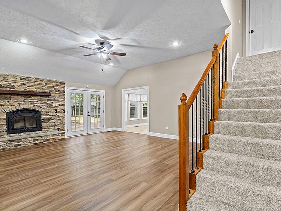 Tucked away in a quiet neighborhood on a dead end road, this beautiful 3-bedroom, 2-bathroom home offers just over 2,000 sq ft of living space. With great curb appeal, the exterior features stunning landscaping, brick and vinyl siding, and charming wood shutters.Step inside to a spacious living area with tall ceilings, a cozy fireplace, and French doors leading to the backyard. The large kitchen boasts beautiful wood cabinets, a kitchen bar, stainless steel appliances, and a convenient pantry. The adjoining dining room, with a lovely bay window, overlooks the backyard.The master suite is a dream with tray ceilings, a walk-in closet, and a full en-suite bath featuring a jetted tub, walk-in shower, and double vanity. The main level also includes two guest bedrooms and a full bathroom. Upstairs, a versatile space offers plenty of room for an additional living area, office, playroom, or guest space.Outside, enjoy the spacious fenced backyard with a patio and mature trees--perfect for outdoor living and entertaining!