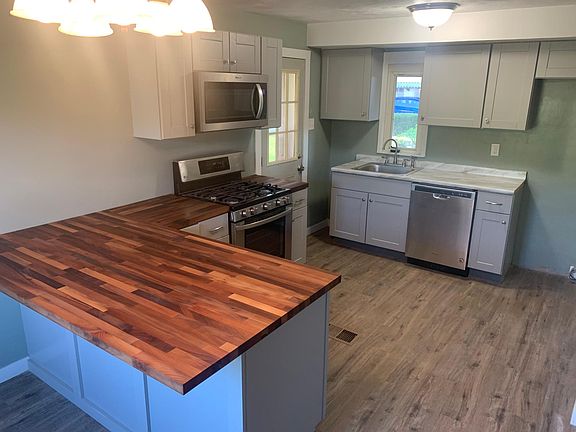 Remodeled three bedroom 1 1/2 bathroom home for rent in Ambridge. - - Beautifully remodeled kitchen includes new dishwasher, refrigerator, gas range, built-in microwave. New cabinets with butcher block countertops are included.. - This home has newly refinished hardwood floors throughout - Great view of the Ambridge/ Aliquippa bridge from the front steps. - This home has a backyard with offstreet parking, covered back patio. - Who are forced air gas furnace and central air - Laundry hook ups Rent is $1050 PLUS ALL UTILITIES Some pets are considered with very strict breed restrictions $1050 per month PLUS ALL UTILITIES Some pets allowed with very strict breed restrictions.