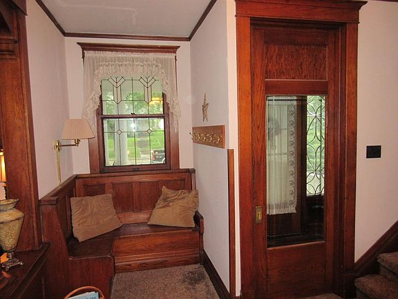 This 2 story home boast 4 BDRS, bath and a half and sits on a corner lot with nice original woodwork throughout. The home features many built ins that include a china hutch with leaded glass windows and dresser, corner window bench with storage and an antique fireplace. The heating (GFA),cooling(CA)and gas hot water heater were installed in 2008 with NEW ROOF (tear off) just completed in October 2016 and vinyl siding replaced in 2010. Very roomy with 1,984 sq.ft. of living space. More amenities include a fenced in backyard, wood deck, and a cement patio that leads to a finished 2 car detached garage (30'x32') that is well insulated and has heat, electric and a half bath. Also in 2016 new floor coverings in the kitchen and two BDRS upstairs and fresh paint in the kitchen and bathroom upstairs. All appliances convey. Plus room to park your RV or boat! By appointment.